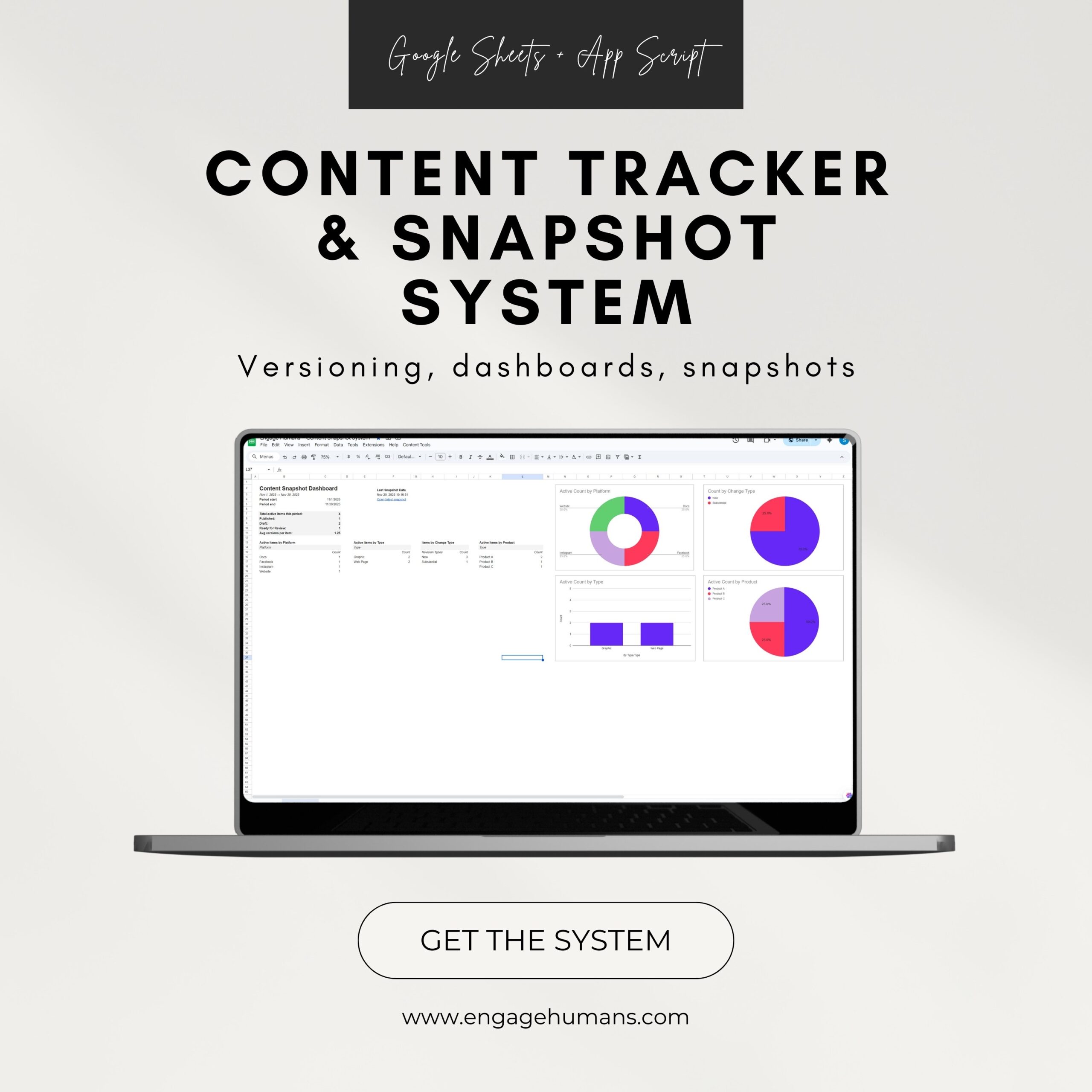 This system runs entirely inside Google Sheets and handles the admin work for you: automatic ItemIDs, version history, clean archiving, and monthly content snapshots saved to Google Drive.